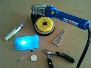 - ボタン電池とジャンク部品で光るオブジェを作成します。ジャンク部品は日々秋葉原から排出されるジャンク袋の部品を利用します。