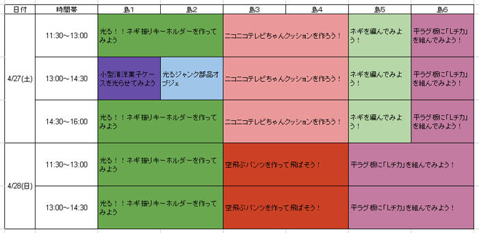 - ワークショップで製作した作品はタワーへ飾り、28日16時~返却を行う。